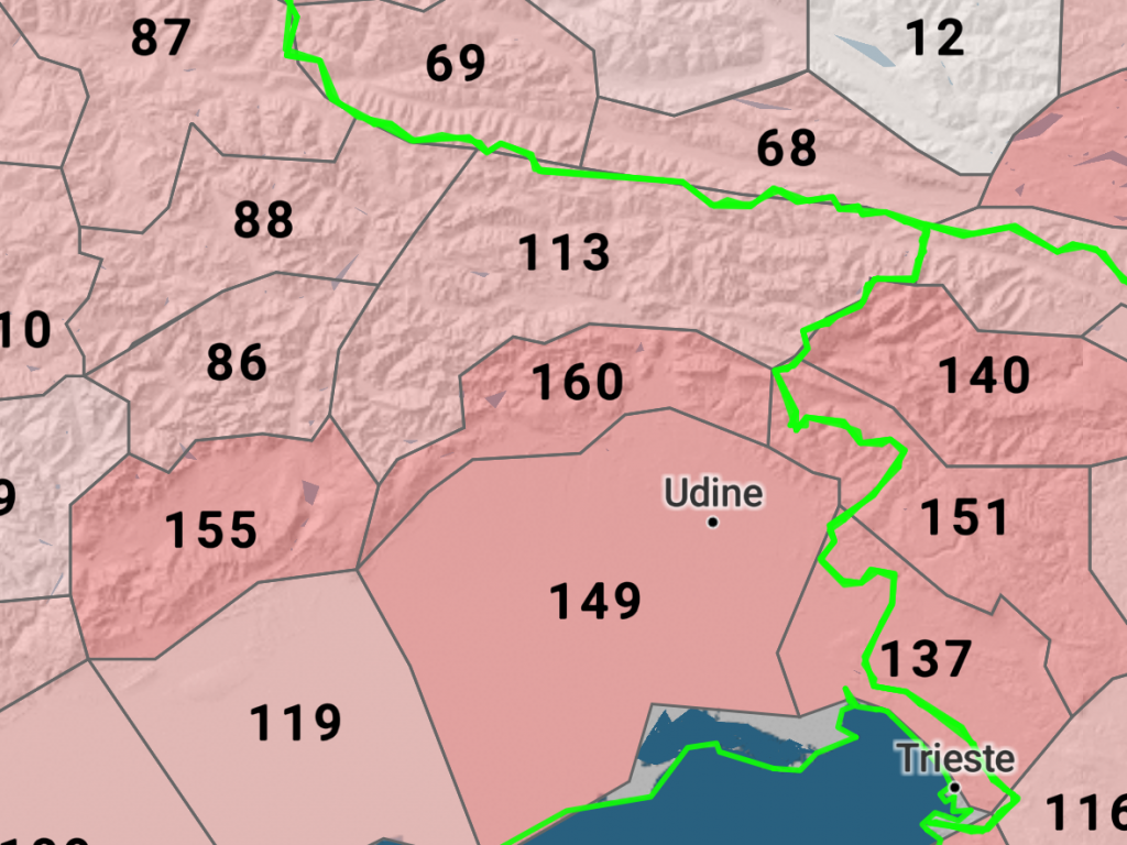 Den Samstag starten wir mit einem kurzen Morgen Hike’n’Fly – was wäre nur Bassano ohne diese ruhigen Abgleiter mit weiten Ausblick in die Poebene? Da wieder gutes Wetter angesagt ist, gehts nach dem Frühstück auch gleich wieder zum Startplatz. Die Thermik setzt etwas später ein und der Westwind ist etwas stärker als am Vortag. Wie am Vortag – aber heute mit vertauschten Rollen – teilen wir uns wieder auf in Team Ost und Team West. Ich bin heute in Team Ost und wir fliegen Richtung Piave über die flachen Ausläufer des Monte-Grappa Massivs. Auf der anderen Seite geht es langsam aber stetig hoch sodass wir mit etwas Geduld wieder über Gratniveau aufdrehen können. Richtung Belluno ist der Flug dann ein absoluter Genussflug: Aufdrehen und mit Rückenwind zur nächsten Thermik gleiten. Am Ende der Ridge drehen wir mit Blick auf die beiden Seen bei Santa Croce um. Der entspannte Rückenwind wird jetzt zum mühsamen Gegenwind. Da die Bergkette aber thermisch inzwischen sehr aktiv ist, geht es trotzdem ohne viel Aufdrehen zurück. Die Piave-Querung schaffen wir aber nicht mehr, und saufen im Südwestwind ab. Das schien aber heute das Tagesmotto zu sein, denn das West-Team landet auf dem Rückweg in der Nähe von Schio. Mit mehreren Anhaltern kommen wir aber alle wieder zum Zentrum unseres Aufenthalts – der Pizzeria.